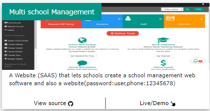 This an online multi school management software for School and colleges ,this is not exactly a school management software but a school management software creator.See it as a wordpress.com but for schools needs